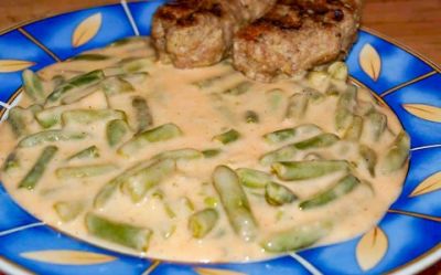 Когда фасоль станет мягкой, добавьте муку, смешанную со сметаной и перцем, и немного мускатного ореха. Варите до загустения.
