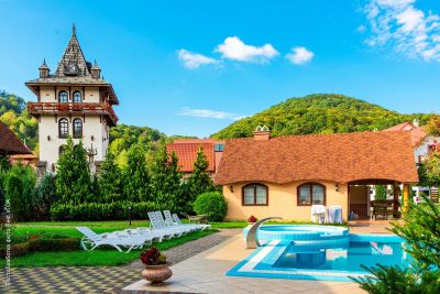 Готель із затишними номерами та котеджами. Вартість починається від 2200 грн на добу, включаючи сніданок. До послуг гостей басейн, кінні прогулянки та салон краси. - Опис: Сучасний готель з розвиненою інфраструктурою та спа-послугами.