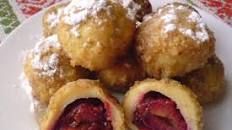 Щоб приготувати гомбовци зі сливами, розріжте сливи навпіл і покладіть в середину кожної чайну ложку цукрової пудри замість кісточок.