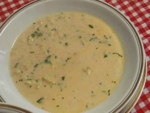 Обсмажте цибулю разом з підсмаженим тістом, потім через деякий час додайте петрушку. Розвести літром молока і такою ж кількістю води. Приправляємо сіллю, паприкою і меленим перцем, кип'ятимо і подаємо зі сметаною.