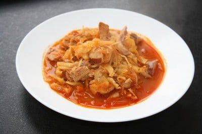 Ніхто вже не скаже, звідки пішла його назва, але точно відомо, що з'явився він, як і багато інших страв, випадково. Просто в корчмі залишилося трохи тушкованих свинини та капусти. Щоб нагодувати запізнілого відвідувача, їх змішали і трохи потушкували разом. Результат, як то кажуть, перевершив усі очікування.