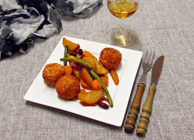Вологими руками сформувати кульки розміром з волоський горіх, потім обваляти їх у панірувальних сухарях, збагачених кунжутом.