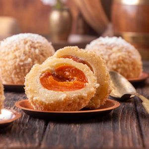 як холодними, так і теплими, корисні в будь-яку пору року. Цього разу ми показуємо версію з абрикосовою начинкою, яка класично готується з панірувальних сухарів і цукрової пудри.Якщо то напевно ви теж не раз бачили страву, обвалену в кремовій крихті всередині і хрустку зовні, подану зі сметаною або варенням.